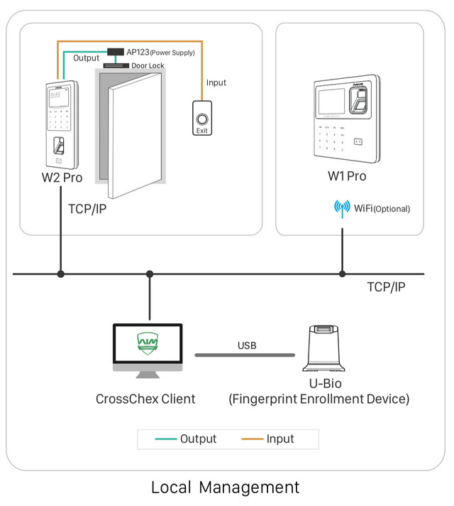 TCP / IP, USB, Mini USB, WIFI, Реле (вихід, дверний контакт/вимикач/дверний дзвінок, вхід и вихід Wiegand) |